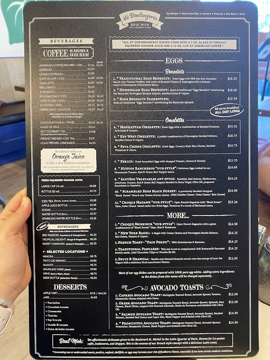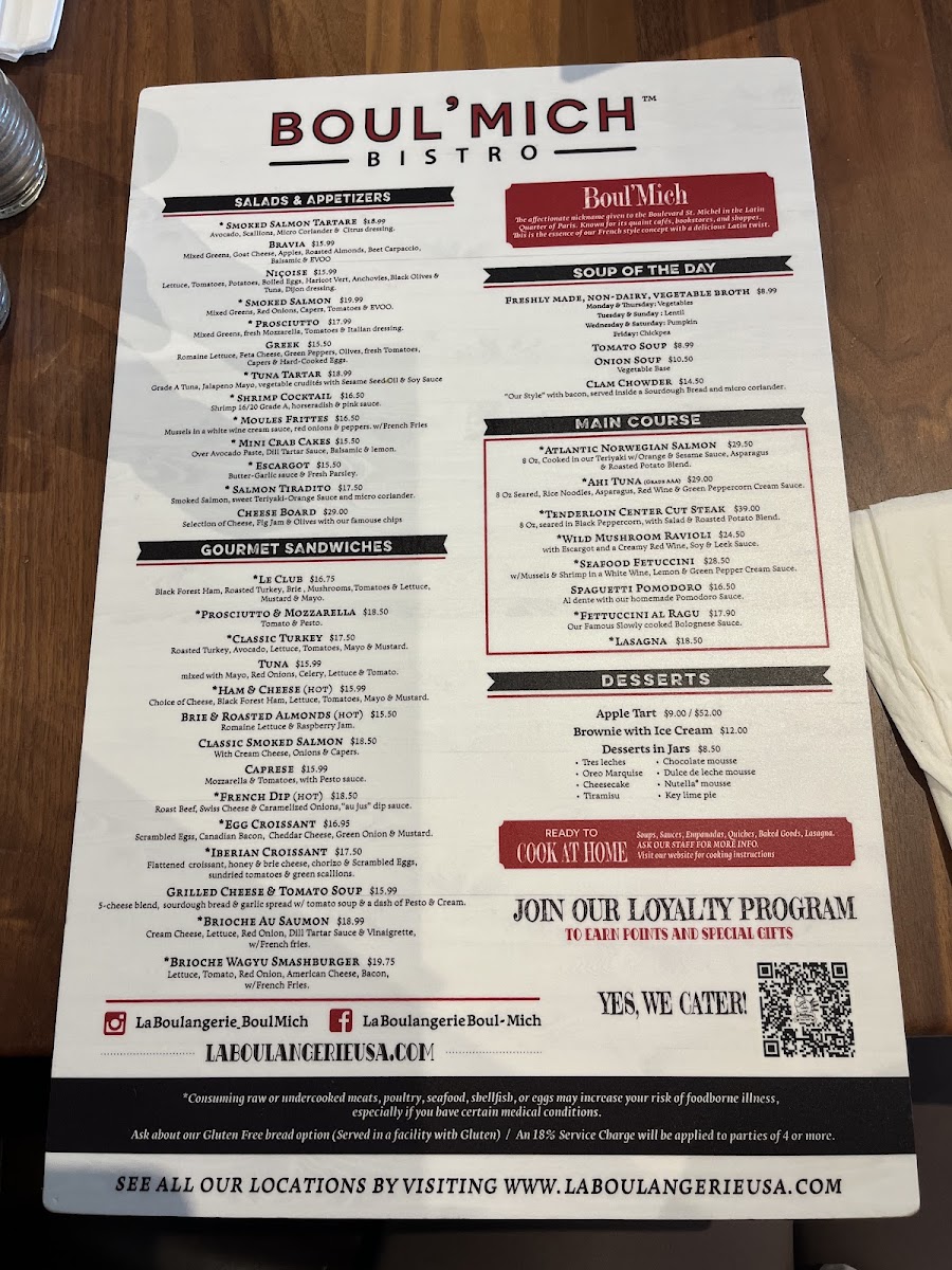Welcome to La Boulangerie Boul'Mich, a vibrant café nestled in Doral, FL, where culinary dreams are realized. The menu offers a delightful medley of dishes that whisk you away to a European culinary haven. Start your journey with the Wild Mushroom Ravioli or indulge in the rich flavors of Fetuccini al Ragu, each plate echoing the chef's passion and expertise.